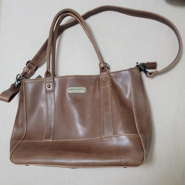 5. 二手MIRYOKU 焦糖棕色托特包/$800 2way 可手提/肩背 A4 OK