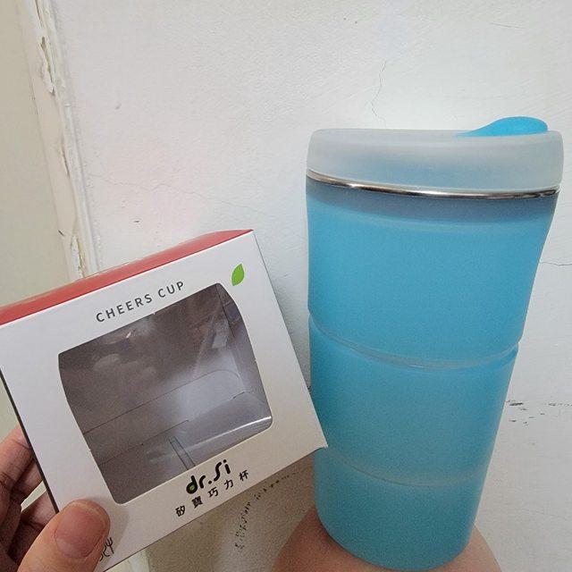 3. 近新dr.Si 巧力杯 透明藍/$700 750ml 一般手搖飲跟超商飲料都可裝 可摺疊收納 僅下水清洗 無附吸管