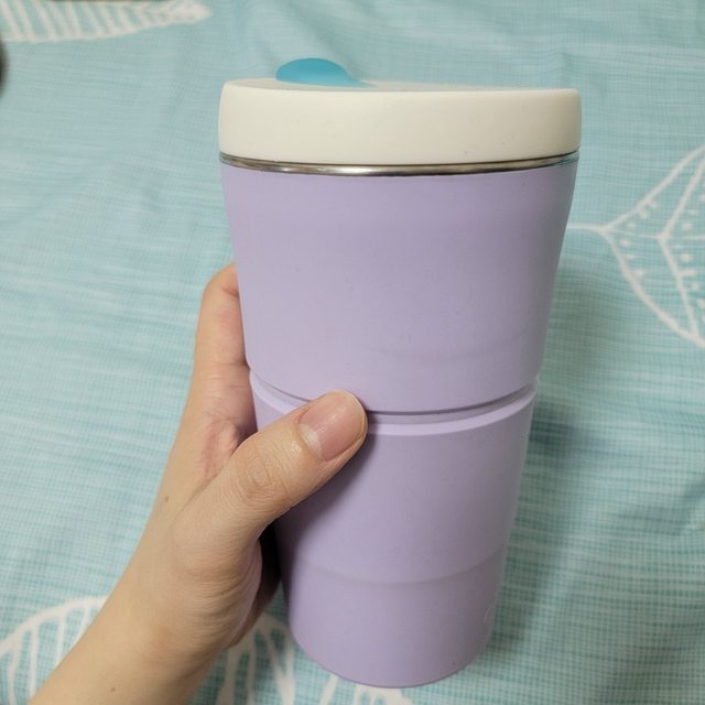 2. 二手dr.Si 巧力杯 紫色/$150 750ml 一般手搖飲跟超商飲料都可裝 可摺疊收納 水滴塞為自行加購更換的透明藍 因杯身顏色淺 有些折疊痕跡 不可微波