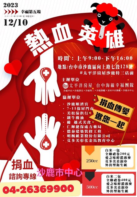 以下是 2023 年 12 月份台中的捐血贈品相關資訊