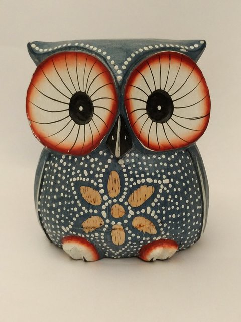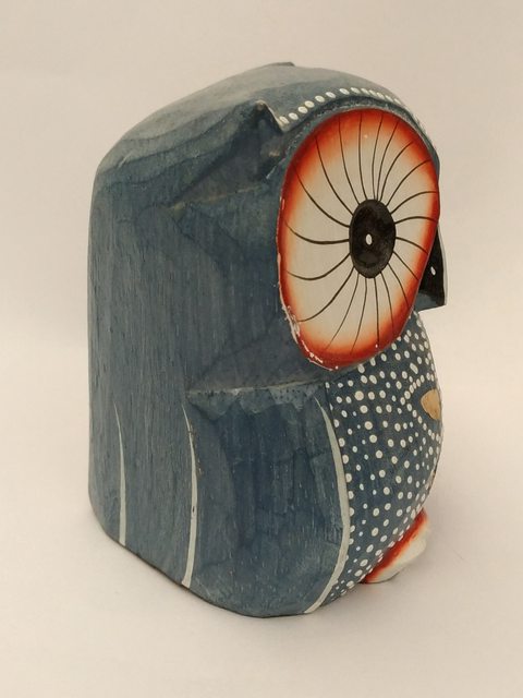 3. 峇里島巴里島木雕三件: 藍貓頭鷹高度10cm售300元,黃貓頭鷹高度15cm售400元,小 天使高度9cm售100元。