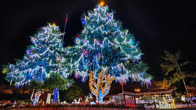 山谷燈光節 谷關遊客中心、溫泉公園、牌樓 冬夜浪漫幸福 營造聖誕氛圍