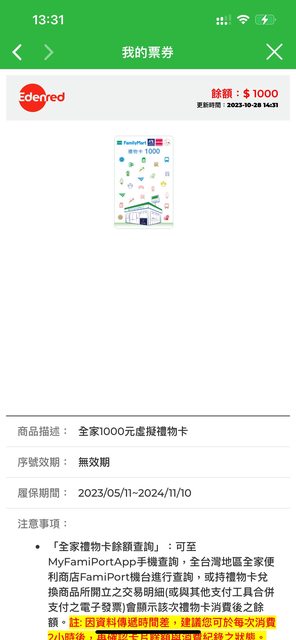 全家虛擬禮物卡 1000*1