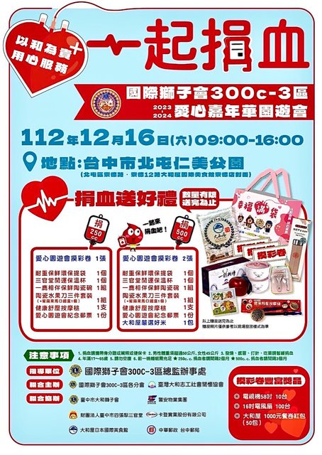 標題[閒聊] 12/16(六)仁美公園捐血活動與愛心園遊會
