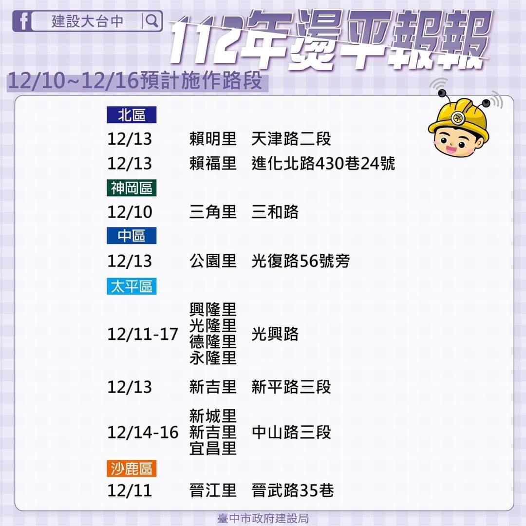 → fspmlp : 每個禮拜建設局都會更新有哪些路段要路平,雖然有 12/15 15:43