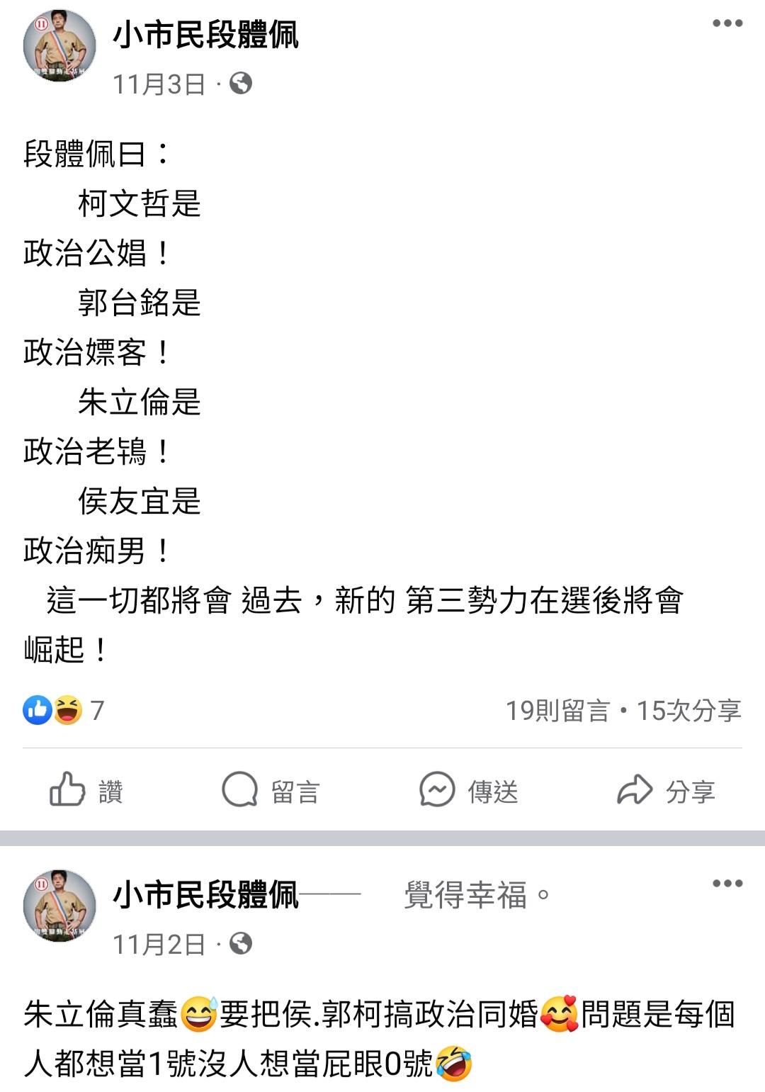 推 fspmlp : 上次選議員主打無黨,這次不演了 12/15 22:29