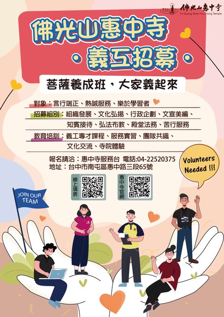 竭誠邀請您,加入惠中寺義工菩薩行列!