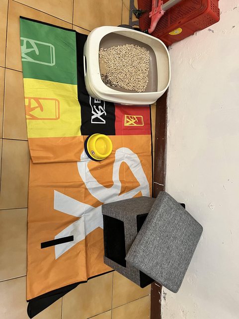 物品說明:橘子遺留下來的飼料、貓砂