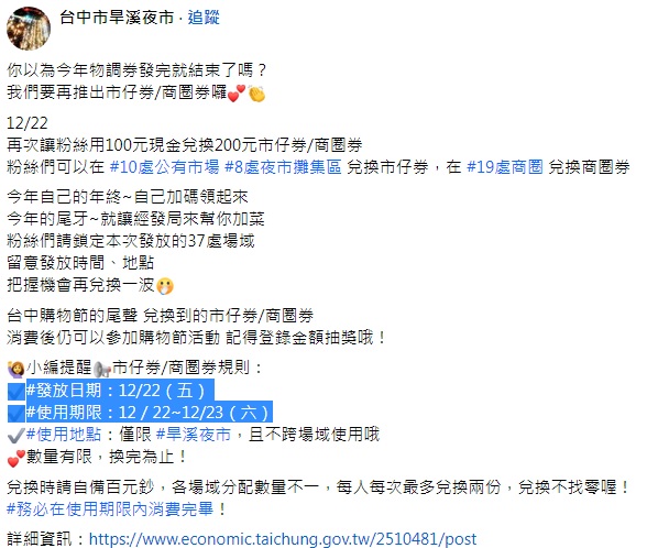 推 ruye : [資訊]第4波物調券 市仔券/商圈券又來囉! 12/21 19:36
