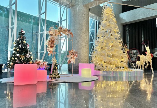 屯區藝文中心「屯藝耀聖誕AR趣」有4公尺高的光之聖誕樹和可愛麋鹿營造雪國浪漫,還可