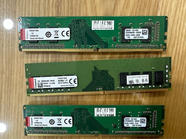 1.記憶體 :金士盾 ddr4 2400 4g*2 、8g*1