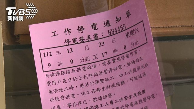 家家戶戶門口被貼了一張紅單,提醒12月23日停電,要及早準備。有藥局因此將當天樂齡活