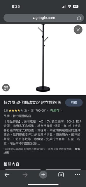 → olin7745 : 但我剛剛去他們網頁看一下沒看到能掛衣服的落地燈 12/25 19:14