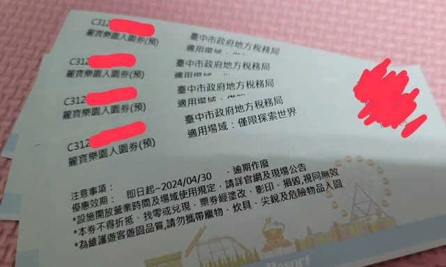 麗寶樂園門票(探索世界)2張1000,有4張