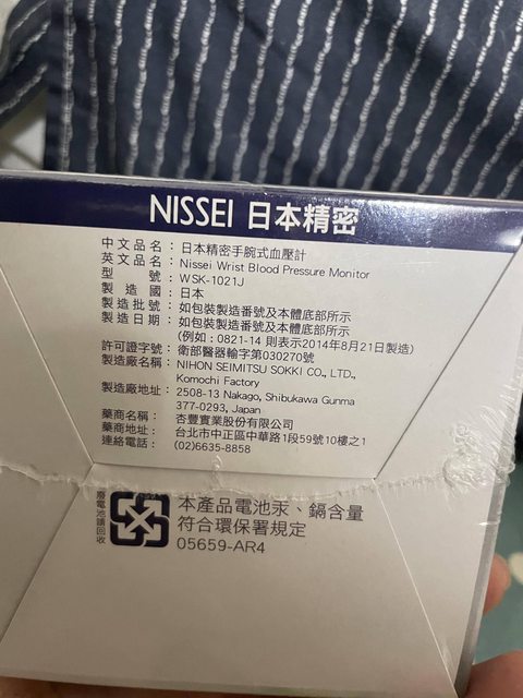 物品:NISSEI 日本精密手腕式電子血壓計