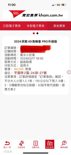 標題[商業] 2/17 小巨蛋民歌演唱會 2張