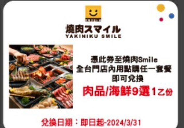 標題【交易】築間 燒肉smile 肉品 7選1/9選1券