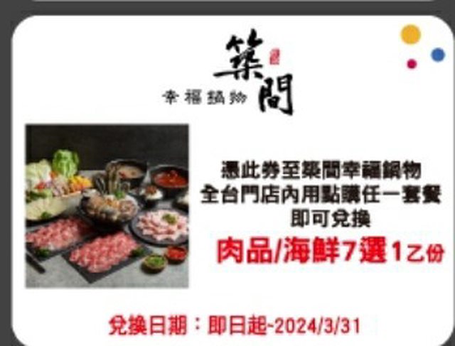 1. 築間肉品 7選1 券: