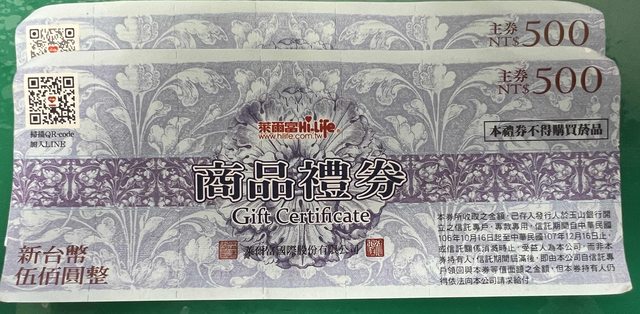 標題[商業] 新光、萊爾富禮券(95折)全收9折賣