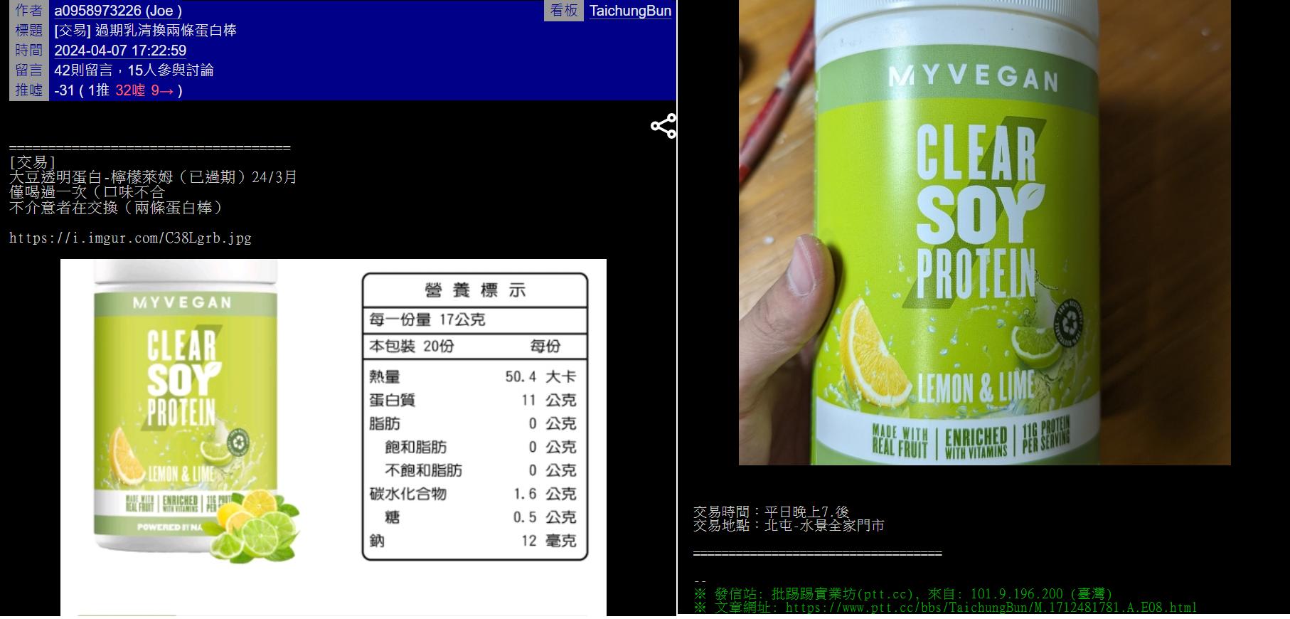 → rnmm: 說不定版友剛好有兩根過期開封的蛋白棒 125.224.210.82 04/07 18:02