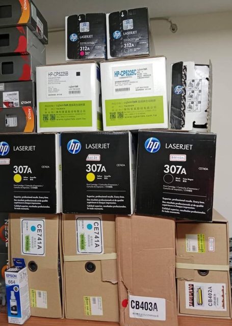 A:HP 原廠碳粉匣 黃色 CE742A (307A)有2個
