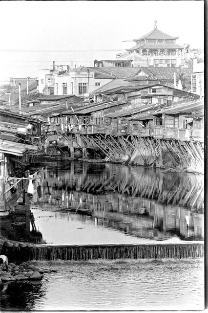 攤販平屋,『警民協會』蓋起柳川東西兩岸上的「克難屋」,限定由外省籍移民購買,有門
