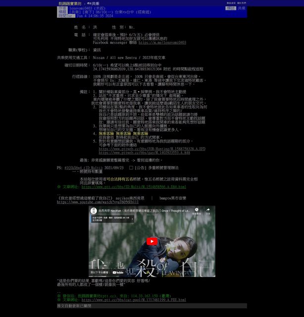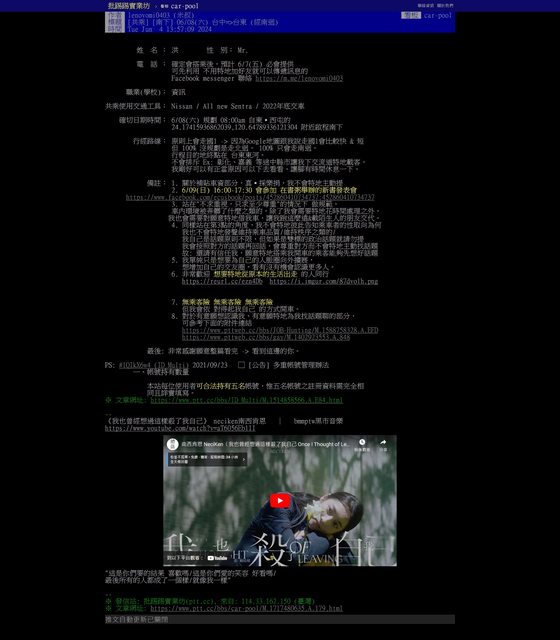 ※ 文章網址: https://ptt-web.org.tw/car-pool/M.1717480635.A.179