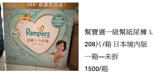 商品名稱:幫寶適一級幫紙尿褲 L 208片/ 箱