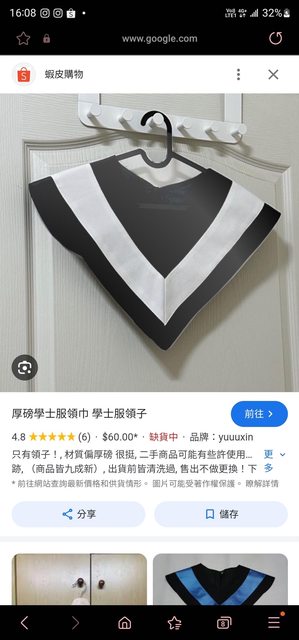 標題[徵求] 租借一天 學士服的「領巾」,拍照用(有