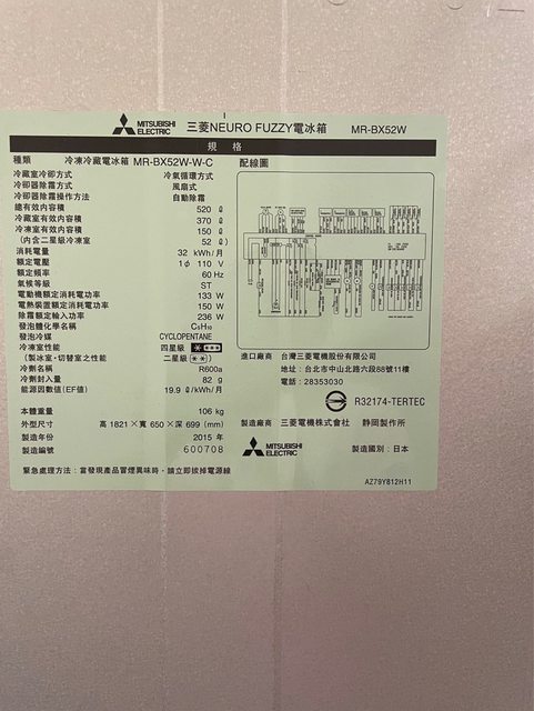 [交易] 三菱五門電冰箱 MR-BX52W