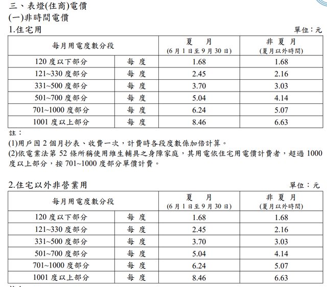 以下是台電的電費的計價