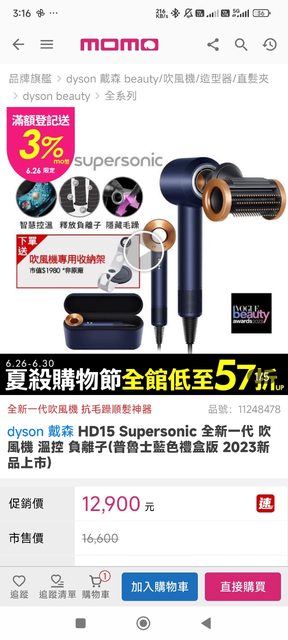 Dyson HD15 吹風機 普魯士藍禮盒版色 附座架