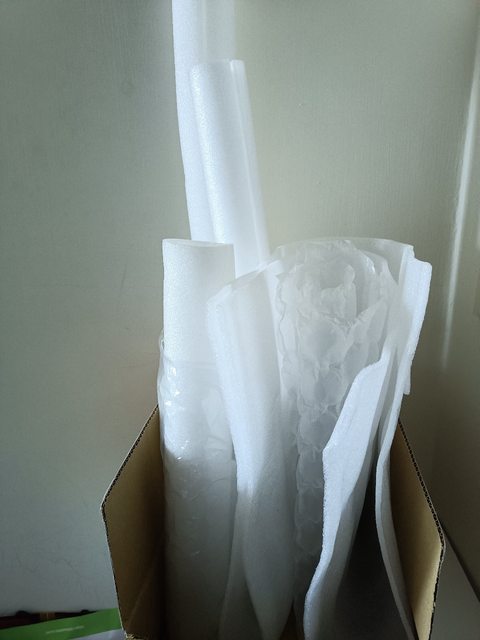 買寶寶推車的包材,泡棉較厚,是圓柱狀。
