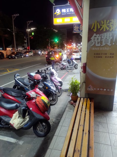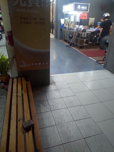 剛剛快8點時,晚餐吃完鴨肉飯,走出門口,發現隔壁店門口長椅上有錢包,有報警等警察
