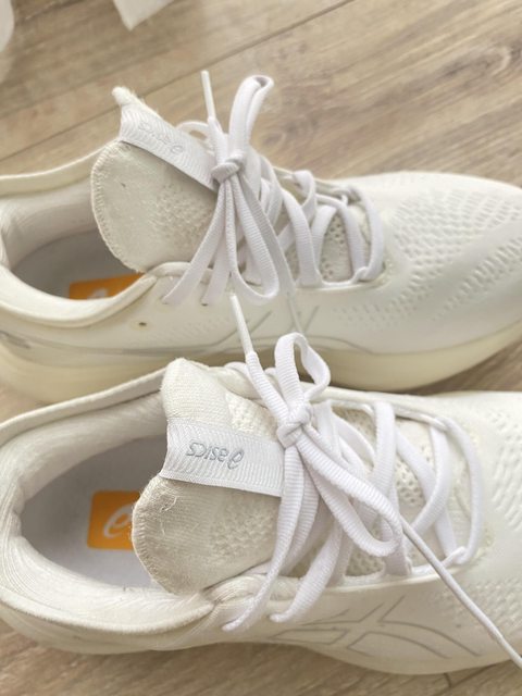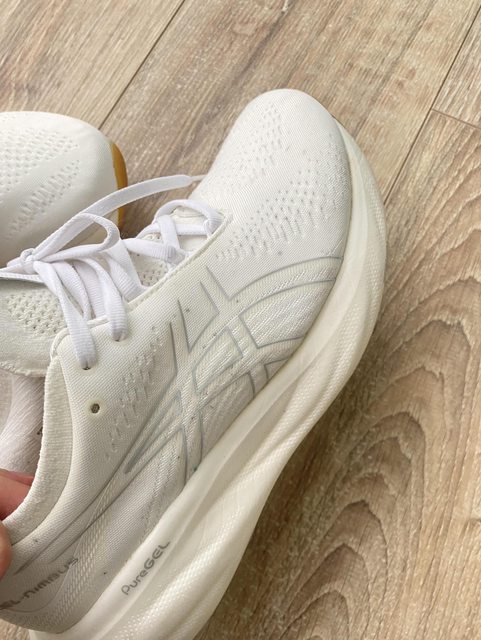 此顏色台灣原價就斷貨 2.亞瑟士 gel-nimbus25 全白限量款 女鞋25.5/售2100元 這雙的底超舒適 但可惜鞋型跟我的腳不合