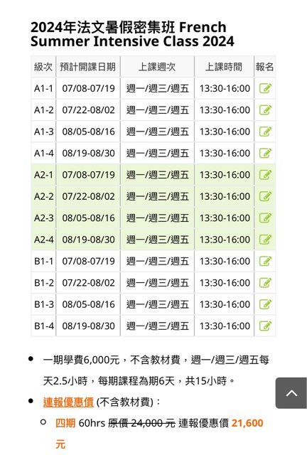 活動名稱:2024年法文暑假密集班 French Summer Intensive Class 2024