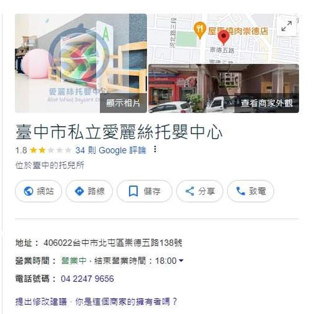 6.備註:幫忙指路,台中市私立愛麗絲托嬰中心