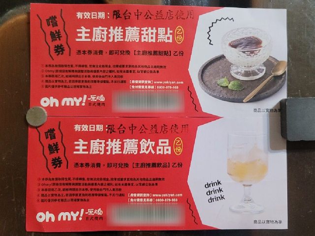 標題[贈送] 北屯/原燒公益店兌換劵