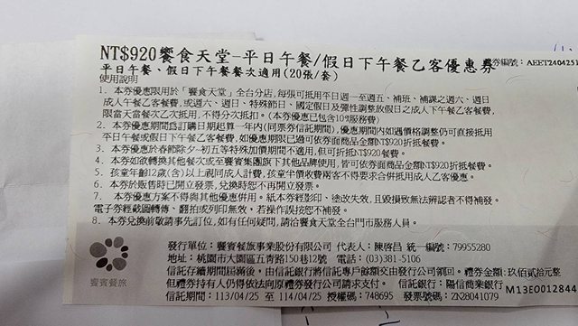標題[交易] 售 1張 饗食天堂平日午餐/假日下午餐券