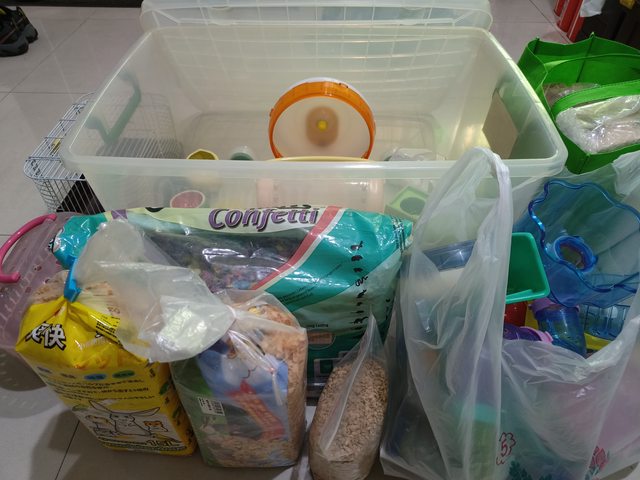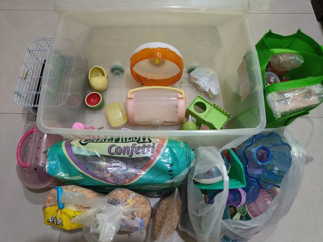 物品說明:整理箱、滾輪、外出盒、陶瓷窩、鼠沙、墊材及玩具雜物