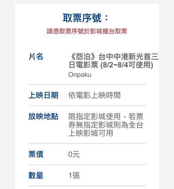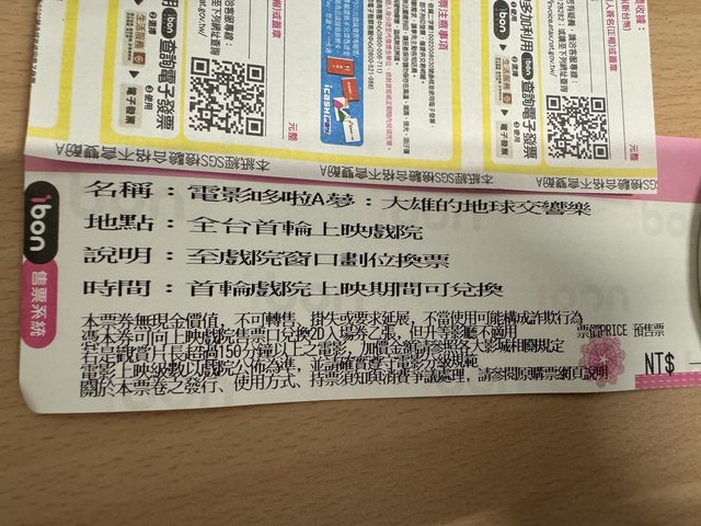 11 其他說明:線上被騙了,以為是兩張哆啦A夢,結果是一張加一張其他的電影,哆啦A夢已領票,怨泊有要買會去領