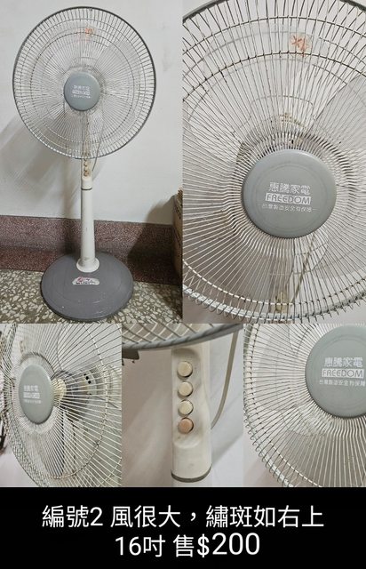 二手電風扇數台,$80-$300,整理家中閒置風扇,有年代但使用皆正常,外觀功能反應至 價位,高標請繞道,不幫預留,已先約定面交時間的為優先,面交時會當場測試 地點:北屯昌平文心路附近自取 時間:站內信討論