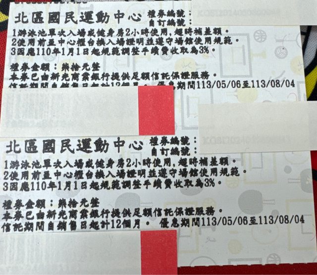 2024 8/4到期北區運動中心優惠券8張/500元