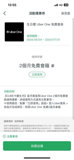 標題[贈送] Uber one會員兩個月