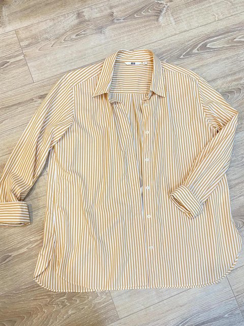 3.uniqlo 條紋棉質寬版襯衫 橘L(女款)/售200元