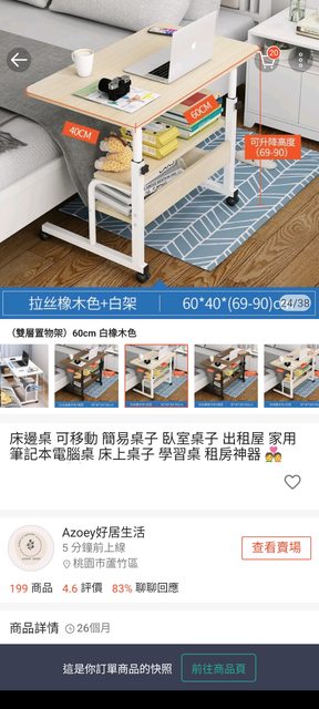 2. 床邊桌(可手動升降有輪子)