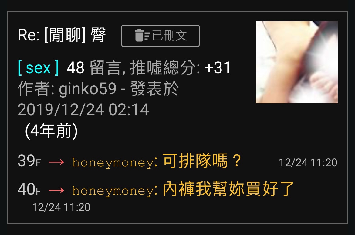 → honeymoney: 你尻幾槍???老南鳥101.138.124.129 07/30 16:29