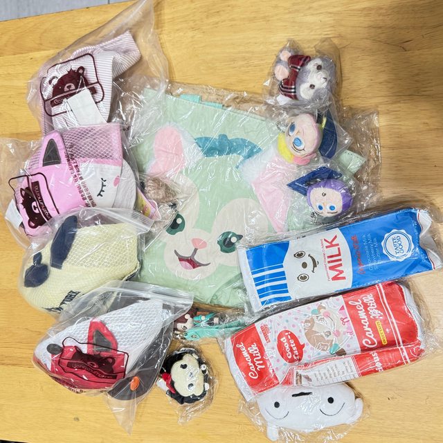 物品名稱:幾頂新的小帽子(1-3歲適用)、幾個新的吊飾娃娃、鉛筆袋、小餐袋