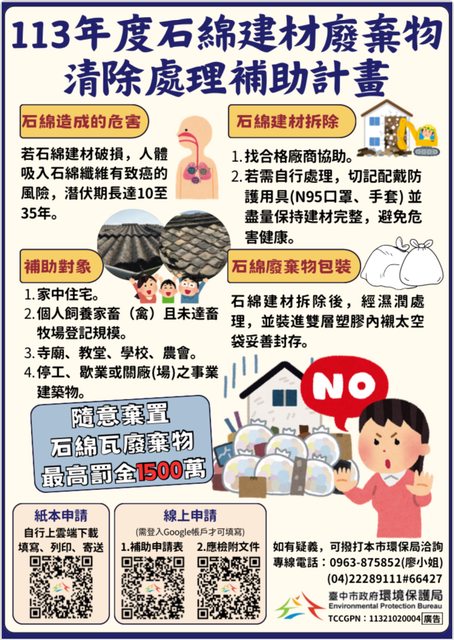 『113年度臺中市石綿廢棄物清理補助宣導說明會』看過來