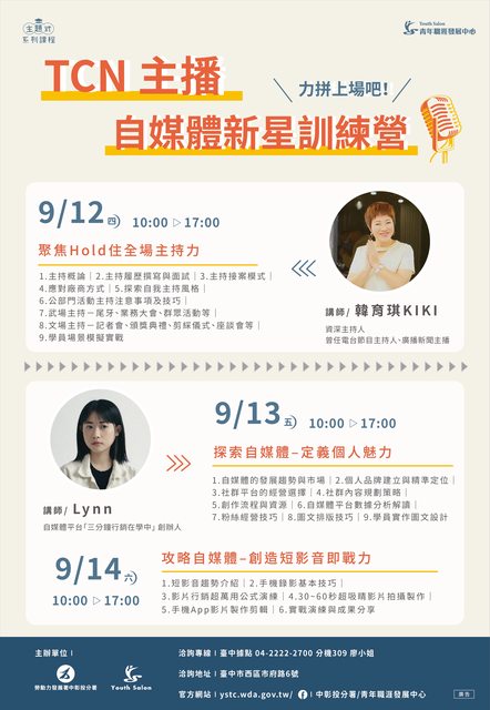 標題[資訊] 9/12-9/14自媒體新星培訓營(免費課程)